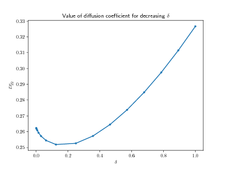 Figure 2: Horizontal diffusion with respect to obstacle shape. A minimum is attained for \(\delta\approx 0.15\).